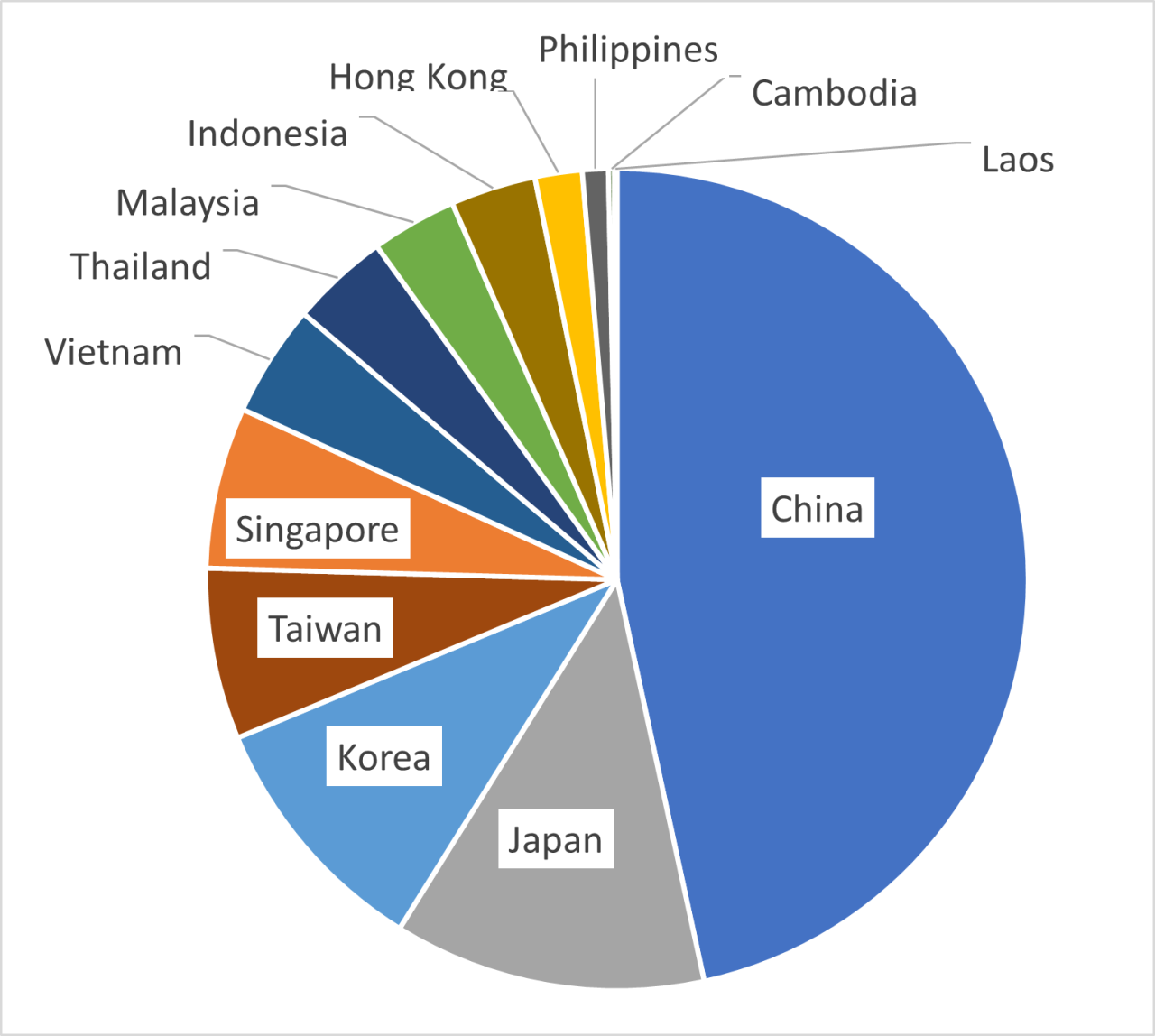 Figure 1. Export Shares in All Products, 2021 Data source: ADB Multiregional Input-Output database. |